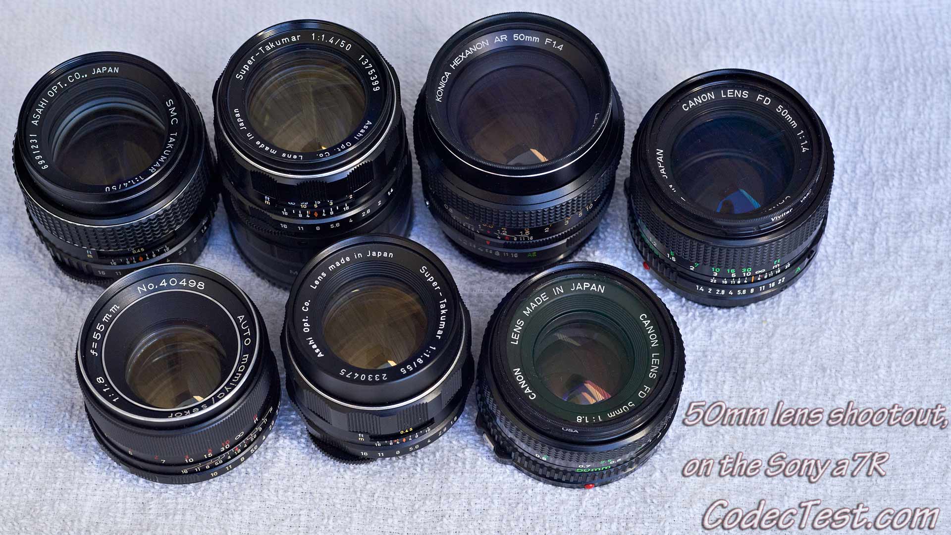 50mm lens Vignetting test: Super Takumar, Canon FDn, Konica Hexanon AR, Pentax SMC Takumar, on the Sony a7R