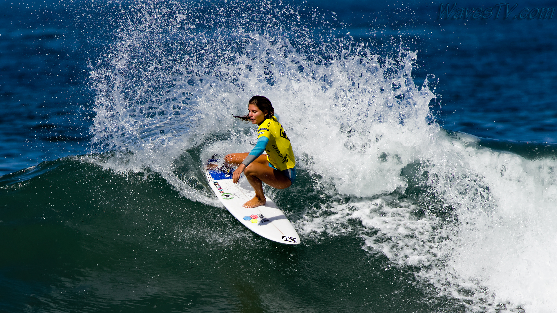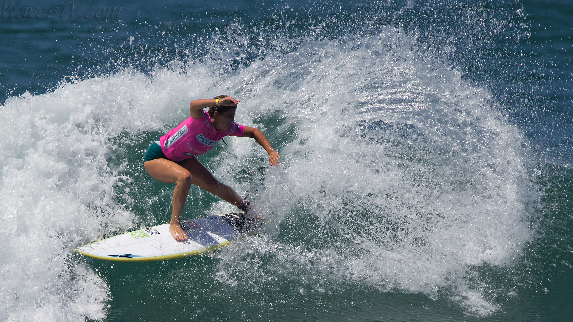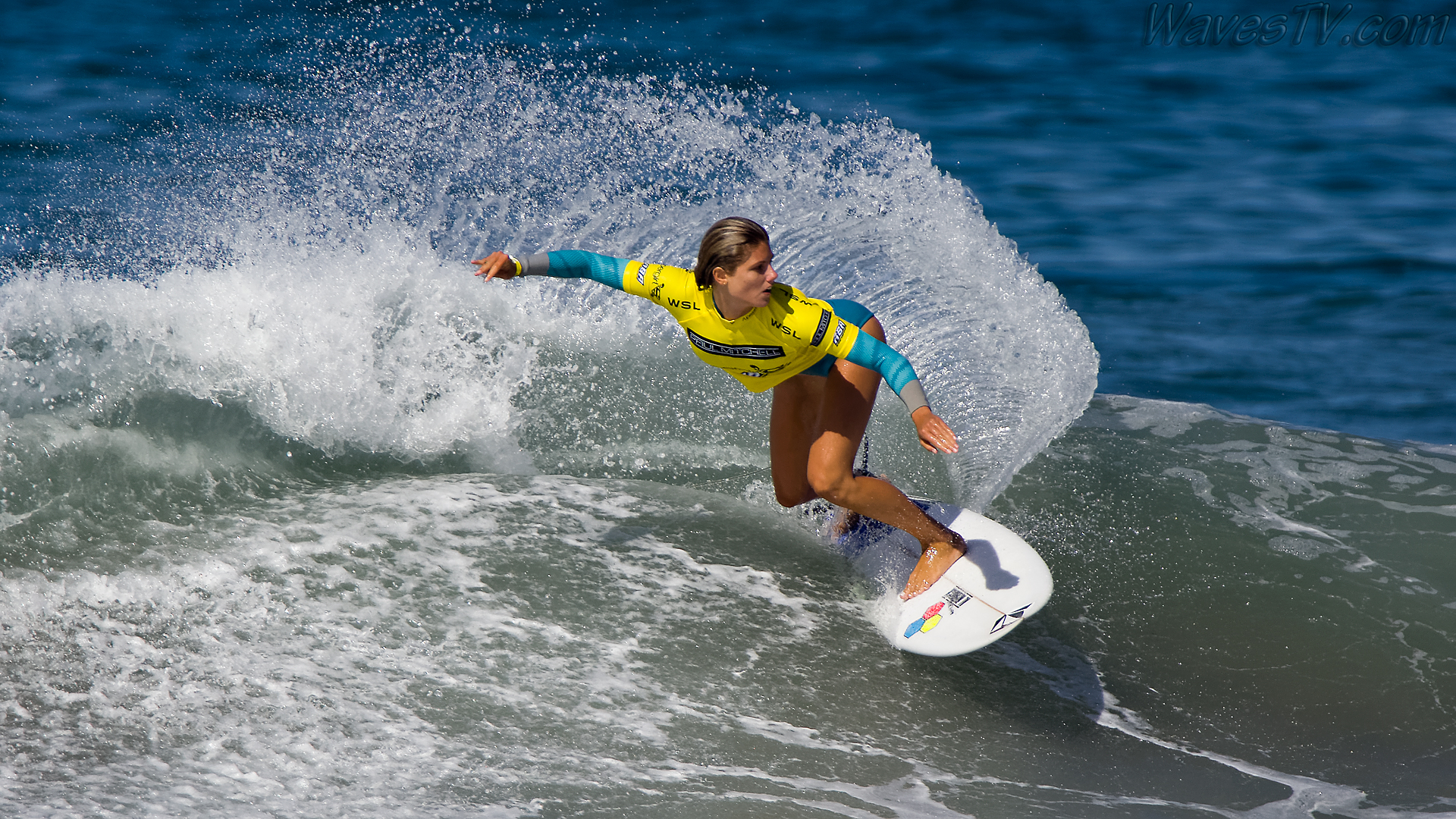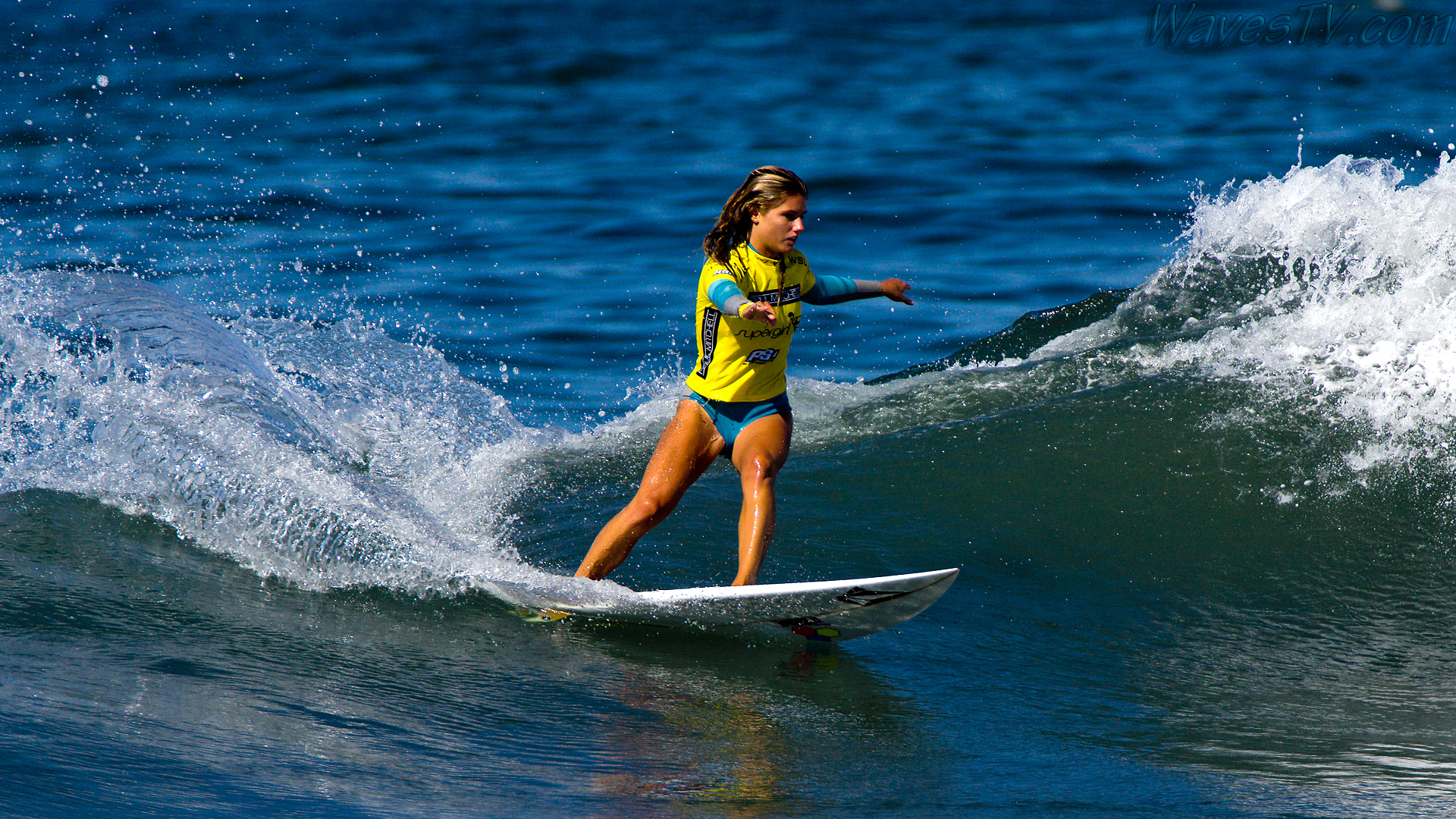 Coco Ho was the winner of the 2016 SuperGirl Pro, working her way through four heats on the last day, including the final round against Malia Manuel. The SuperGirl Pro is a qualifying event for the World Surf League competition, and by virtue of her final round appearance in the SuperGirl Pro, Malia went to first place in the Womens QS point standings. Laura Enever and Carissa Moore went down in the semi-final rounds. Biggest air of the day award went to Courtney Conlogue, as seen in the surf photo below.